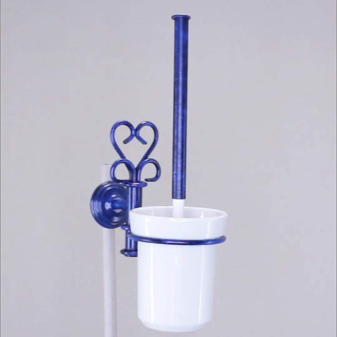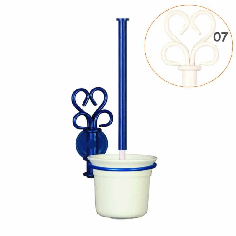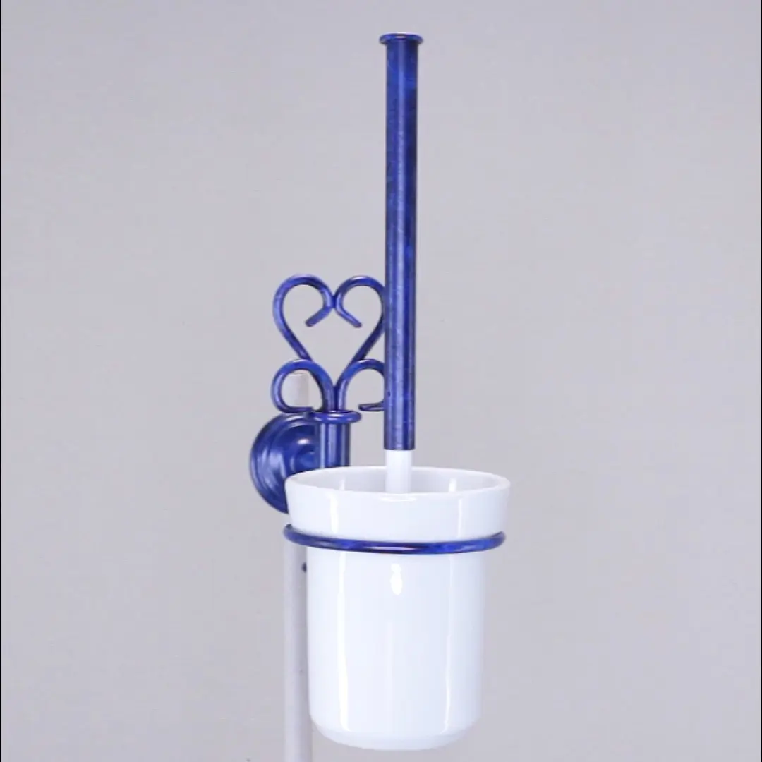 Esta escobilla baño pared originales destaca por su carácter decorativo y funcional. Diseñada con un soporte metálico de líneas limpias, combina la solidez del hierro con el encanto de la cerámica blanca.